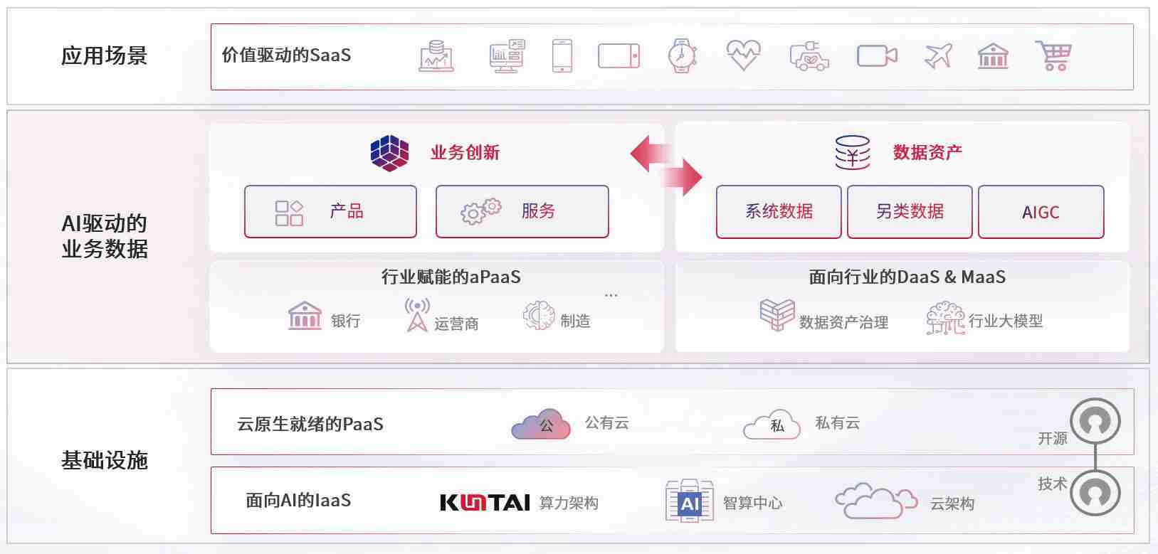 数字时代,,围绕企业数字化转型的关键要素,,,,z6com尊龙数码开创性的提出数云融合战略和技术体系框架,,,着力在云原生、、、、数字原生、、、、AI原生和信创产业上架构产品和服务能力,,为处在不同数字化转型阶段的快消零售、、、汽车、、、金融、、医疗、、、、政企、、教育、、运营商等行业客户提供泛在的敏捷IT能力和融合的数据驱动能力,,构建跨界融合创新的数字业务场景和新业务模式,,,助力企业级客户建立面向未来的核心能力和竞争优势,,全面推动社会的数字化、、、、智能化转型升级。。。